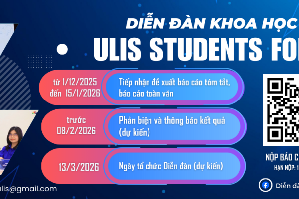 THÔNG BÁO SỐ 1: Thông báo mời viết bài, tham gia Diễn đàn Khoa học sinh viên “ULIS Sutudents Forum” 2026 với chủ đề “Sinh viên với khoa học công nghệ, đổi mới sáng tạo và chuyển đổi số”