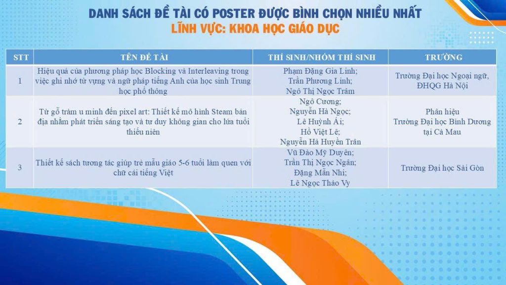 Đề tài nhận được số lượng bình chọn ấn tượng, thể hiện sức lan tỏa của hướng tiếp cận sư phạm mới mẻ, có tính ứng dụng cao trong dạy và học ngoại ngữ. Thành tích này là sự ghi nhận xứng đáng cho nỗ lực nghiên cứu nghiêm túc, tinh thần sáng tạo và quyết tâm theo đuổi học thuật của nhóm sinh viên.Xin gửi lời chúc mừng tới đội thi.